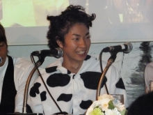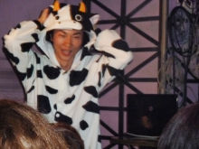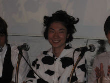 ムーチャンは指で角をつくって、突進しながらステージへ(笑)
