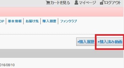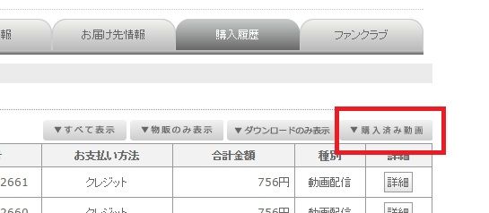 2購入履歴ページの右上にある「購入済み動画」をクリックします
