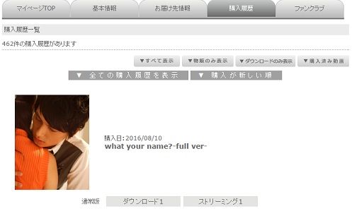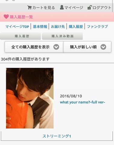 購入履歴一覧に、ご購入頂いた配信動画の作品名・画像が表示されます。