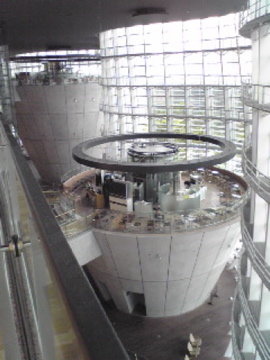 丸い形のレストランの渕に沿うような丸いレール上に、