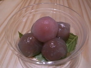 美しい色をしたくずもちに、つい手がのびてしまった。
