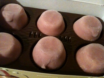 お餅をついていると、返して、塊の中心のほうに行った餅が、