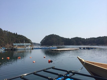 美しい景色に、牡蠣養殖の筏が浮かぶ。