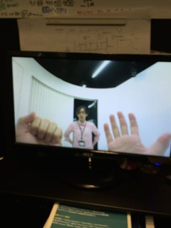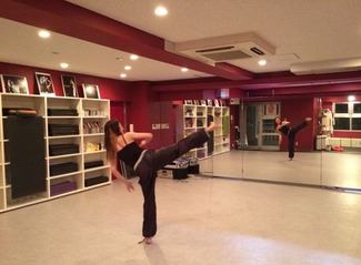 人数多い大きなクラスで、みなさんのお手本になるべくヨガポーズを見せる係りです。