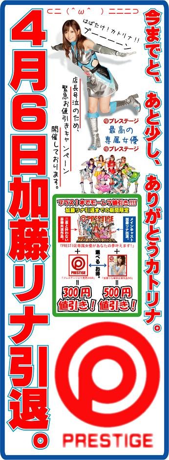 [画像:加藤リナ引退値引きPOP2]