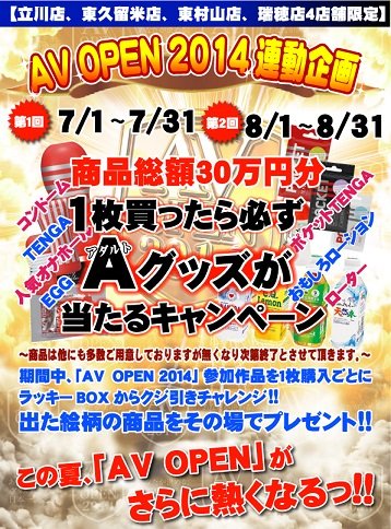 なんと今なら話題のAVOPEN2014を対象に玩具クジ引きやってます!