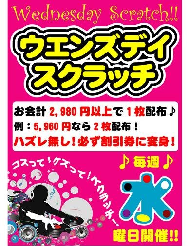 毎週水曜日は当店で、削ってお得な割引券GETしちゃいませんか?