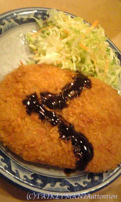 081114-1コロッケがわらじに見えるようにソースでデザインしてもらいました!
