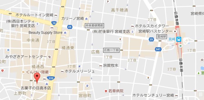 JR日豊本線宮崎駅からバスで橘通1丁目に行き、