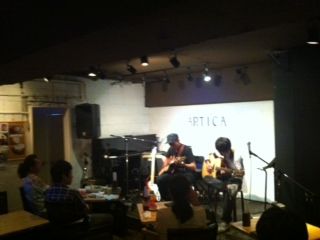 サポートたけちゃんと一緒にツインギターで奏でるISA君。 iphoneにて撮影。