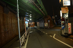すぐに上方にガード、左手にLAWSON、その先は踏み切りです。