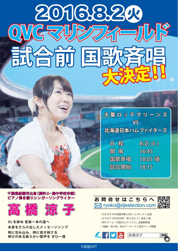 高橋涼子の大舞台を見に、球場へ応援に来て下さい!!