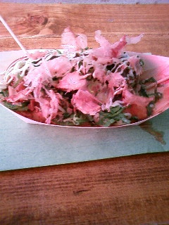 終わったあと、古西君曰く「日本一旨いタコ焼き屋」に行って色々食った。青唐辛子にんにくタコ焼きが激ヤバだったな〜。