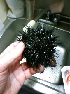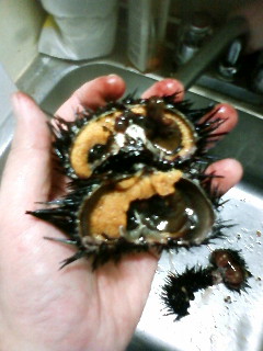 生まれて始めてウニの内部を直で見る。殻を割った途端強烈な潮臭さ!というか生臭さ...。肝がかなり入っていてそれが生臭い。値段が値段なだけに大丈夫かよこれ、と思ったが実をよく洗って醤油を垂らすとアラ不思議、匂いの奥に隠れていた旨味が!ワサビをごっそり投入したら「ンマ〜イ」(藤子不二雄A)。