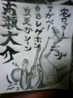 特に昨日はたけやんと怠雅君も交えた「愛の三叉路」という新生ユニットで、始まる前も終わった後も酒を呑んでいい気分、ライブは勿論大いに歌い叫び弾いた。リハ不足でバラついたとこもあったけど、元々高瀬大介個人でのライブ予定だったからね、他二人はともかく俺とお客さんが楽しけりゃいいのだ(笑)。でも次はもっとカッチリやるぞ。