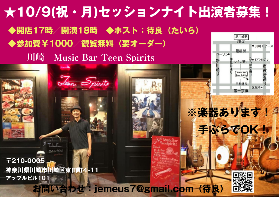 10月27日(金)川崎Teen Spiritsフリーライブ※(注記)バンド編成