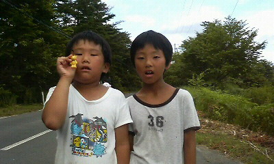 田んぼの畦道をまっちゃん&もっちゃん兄弟の自転車を借りて走ったり...