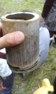 おおばこ茶を竹で作った入れ物で振る舞ってもらいました。