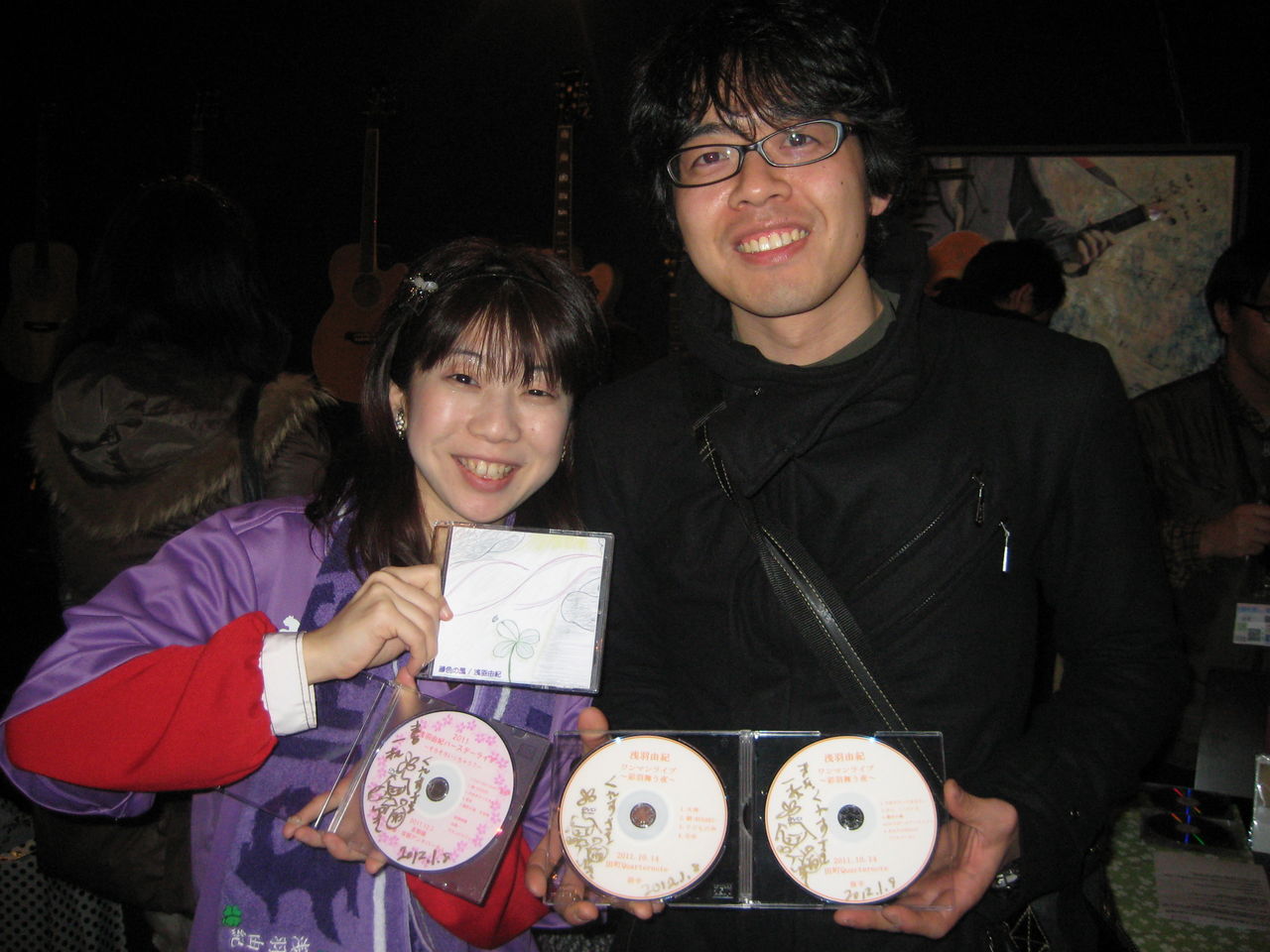 1年ぶりの再会。CD藤色の風・バースデー京都ライブDVD・東京田町ワンマンライブDVDご購入。以前やっていたラジオ日経「藤色の風」の番組を通して、私を知ってくださり、昨年始めて名古屋のライブにいらしてくださいました。そこから1年ツイッターでずっとずっと変わらず応援してくださっていました。本当に嬉しかったです。打ち上げは分かれてしまったので、次回は一緒に飲めたらいいな♪