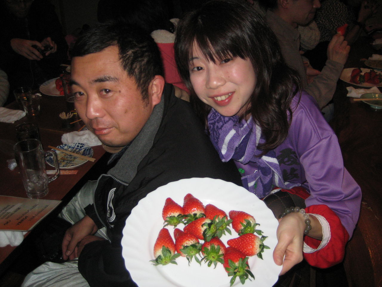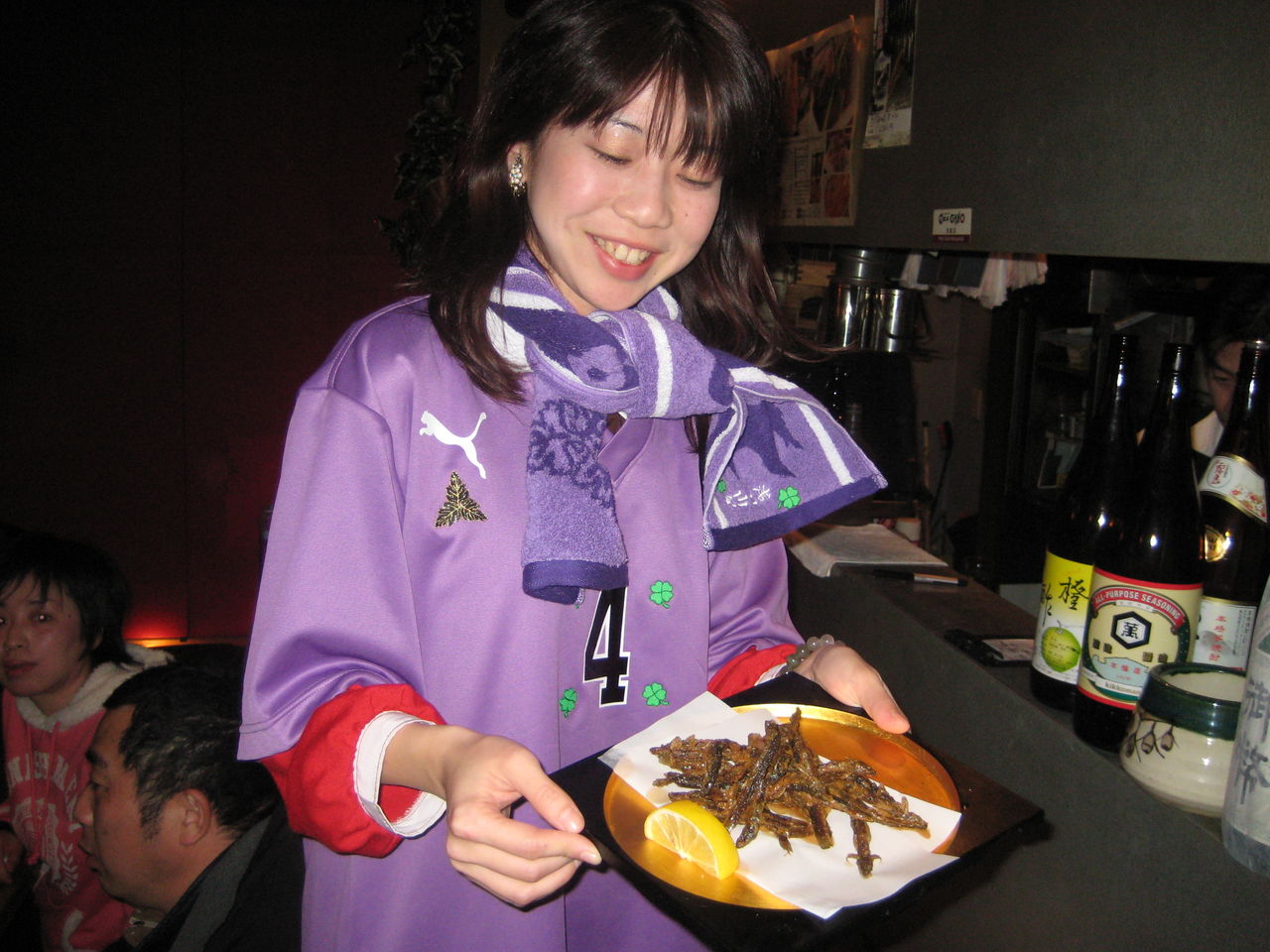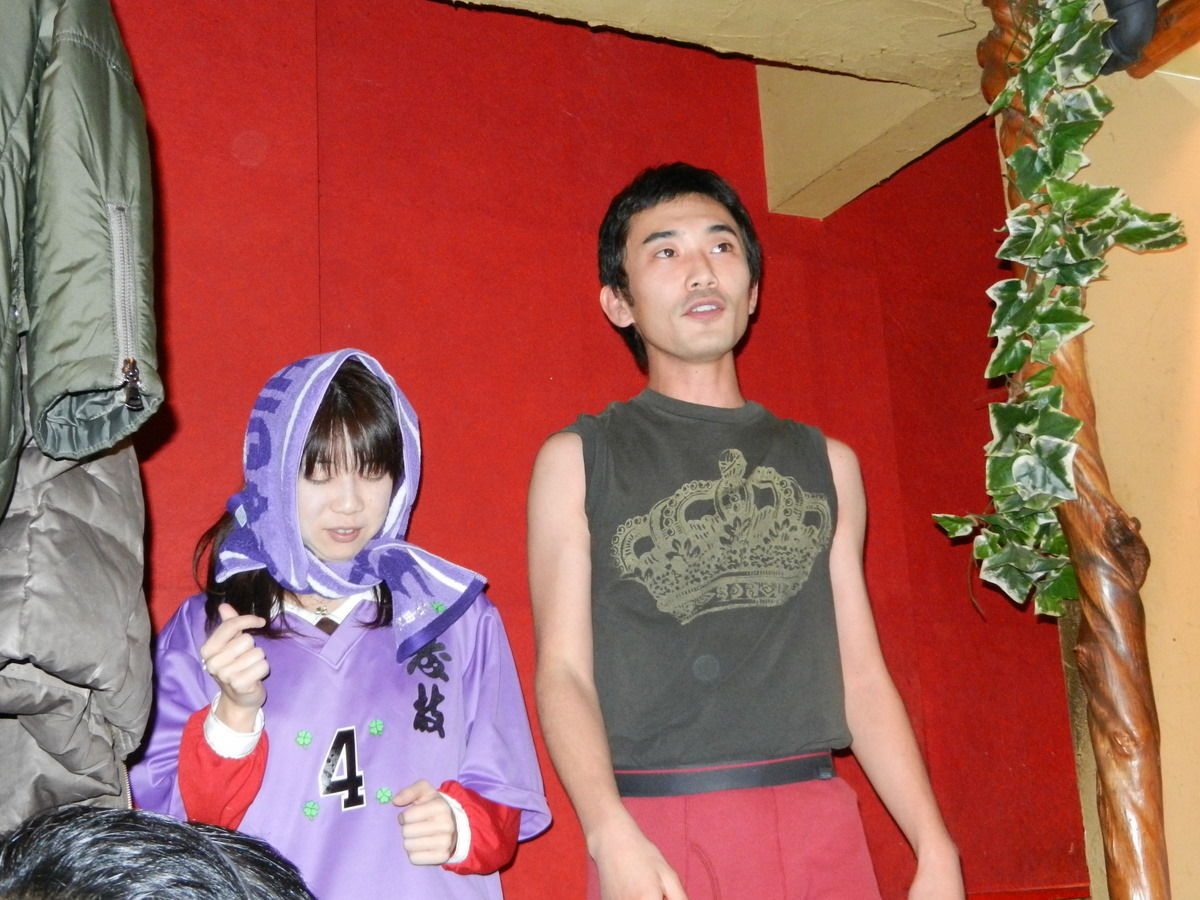 (正雪さんプレゼントのユニフォームとタオルをまいたまま、打ち上げていました)