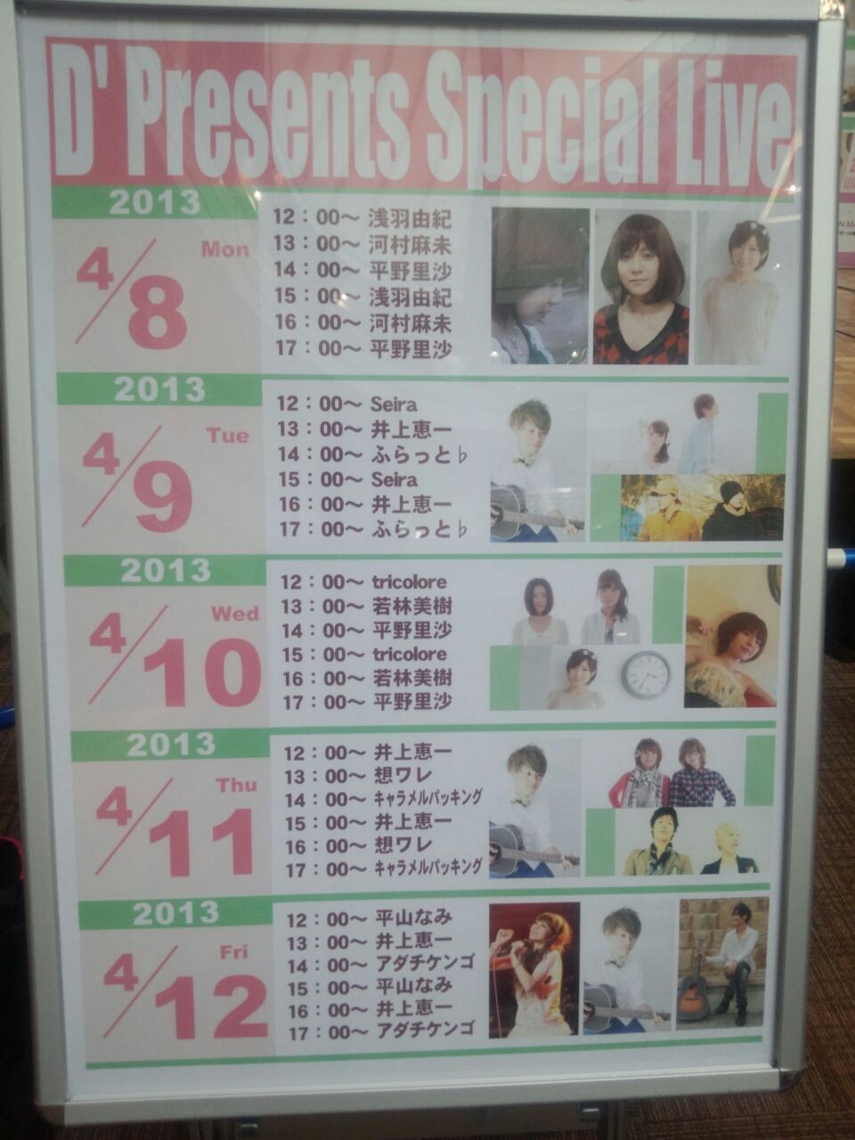 【大阪・近郊の皆様★応援よろしくお願いします】2013年4月9日梅田西天満ライブハウスD出演★平野里沙/U./幸美美佳/浅羽由紀 他