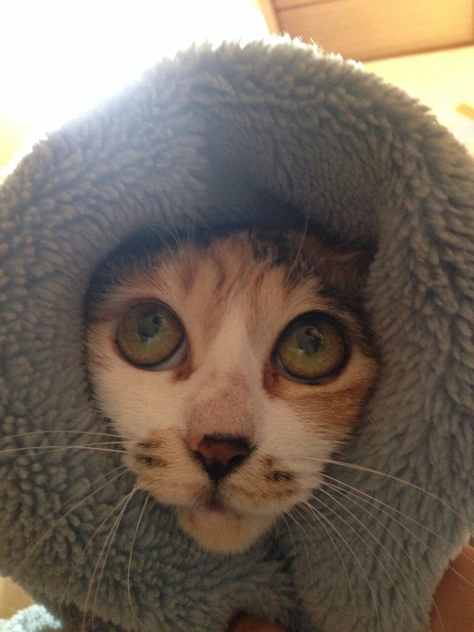 寝ぼけながら毛布に一緒に入ったちくわをエスキモーにしてみました