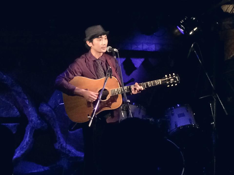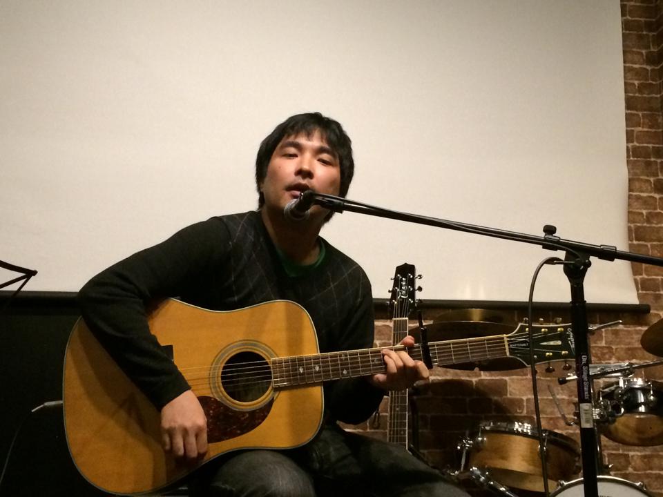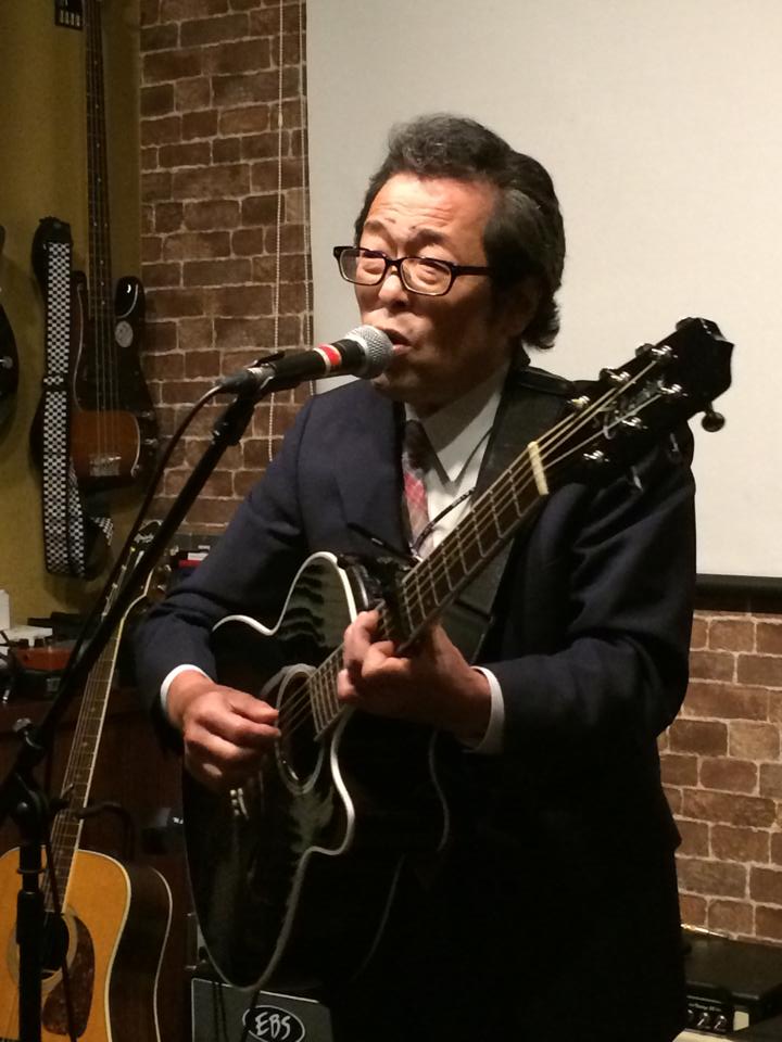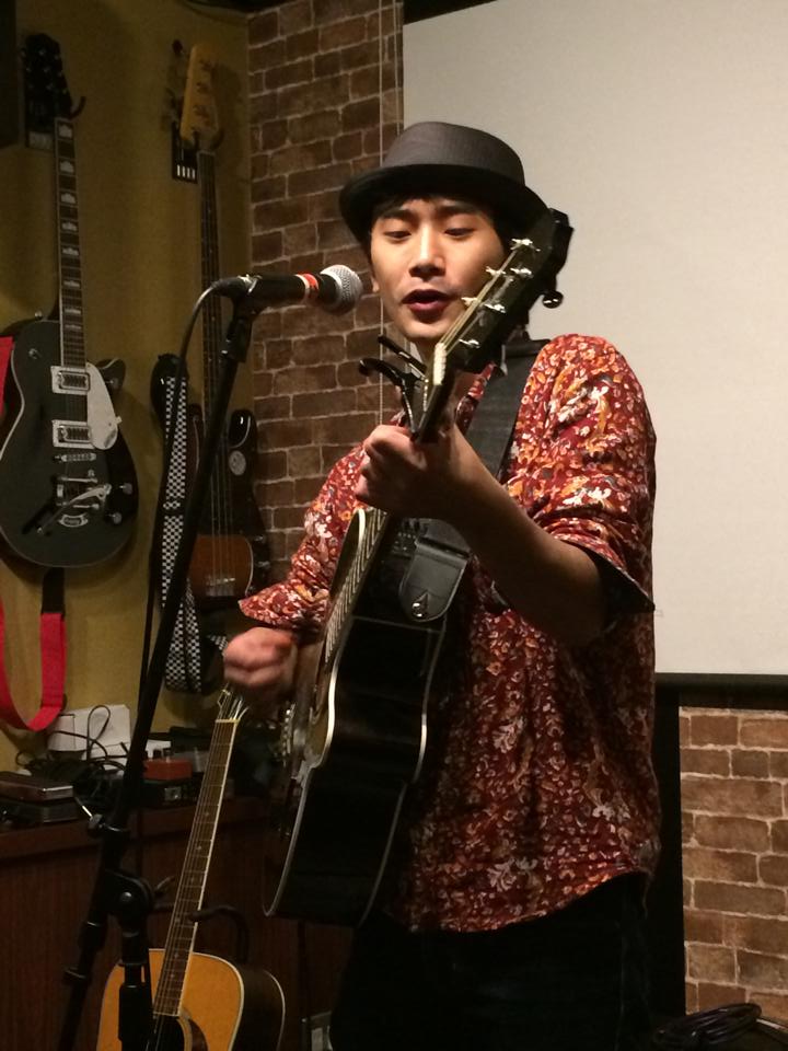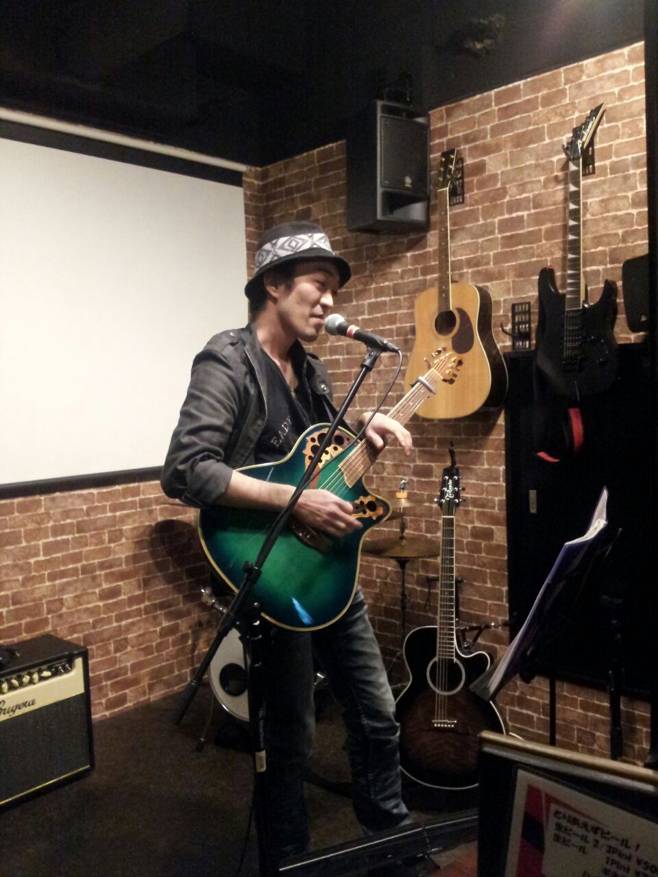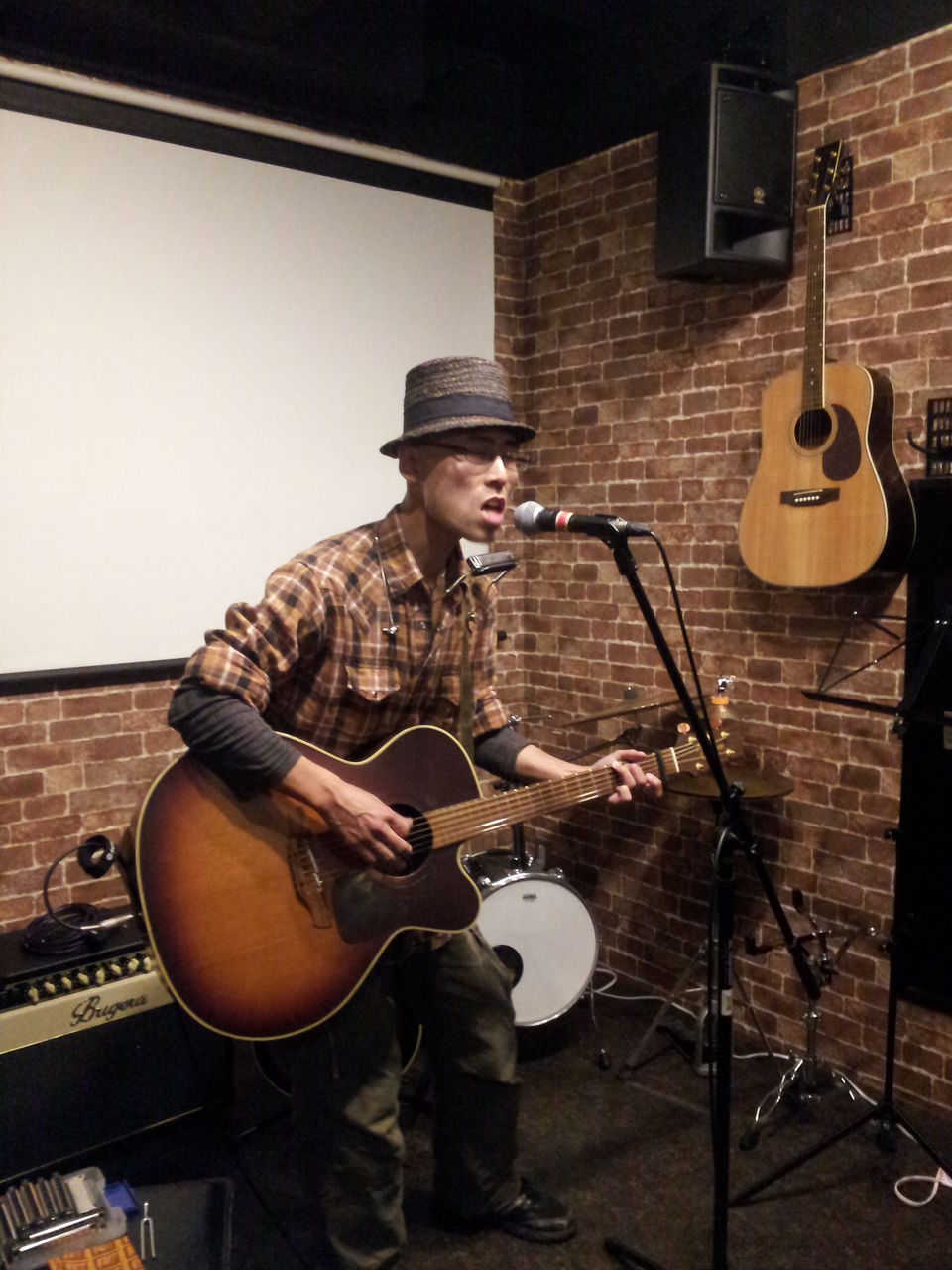 ライブでは、リズムを強調したギター1本で「心に響く歌」を心掛けている。