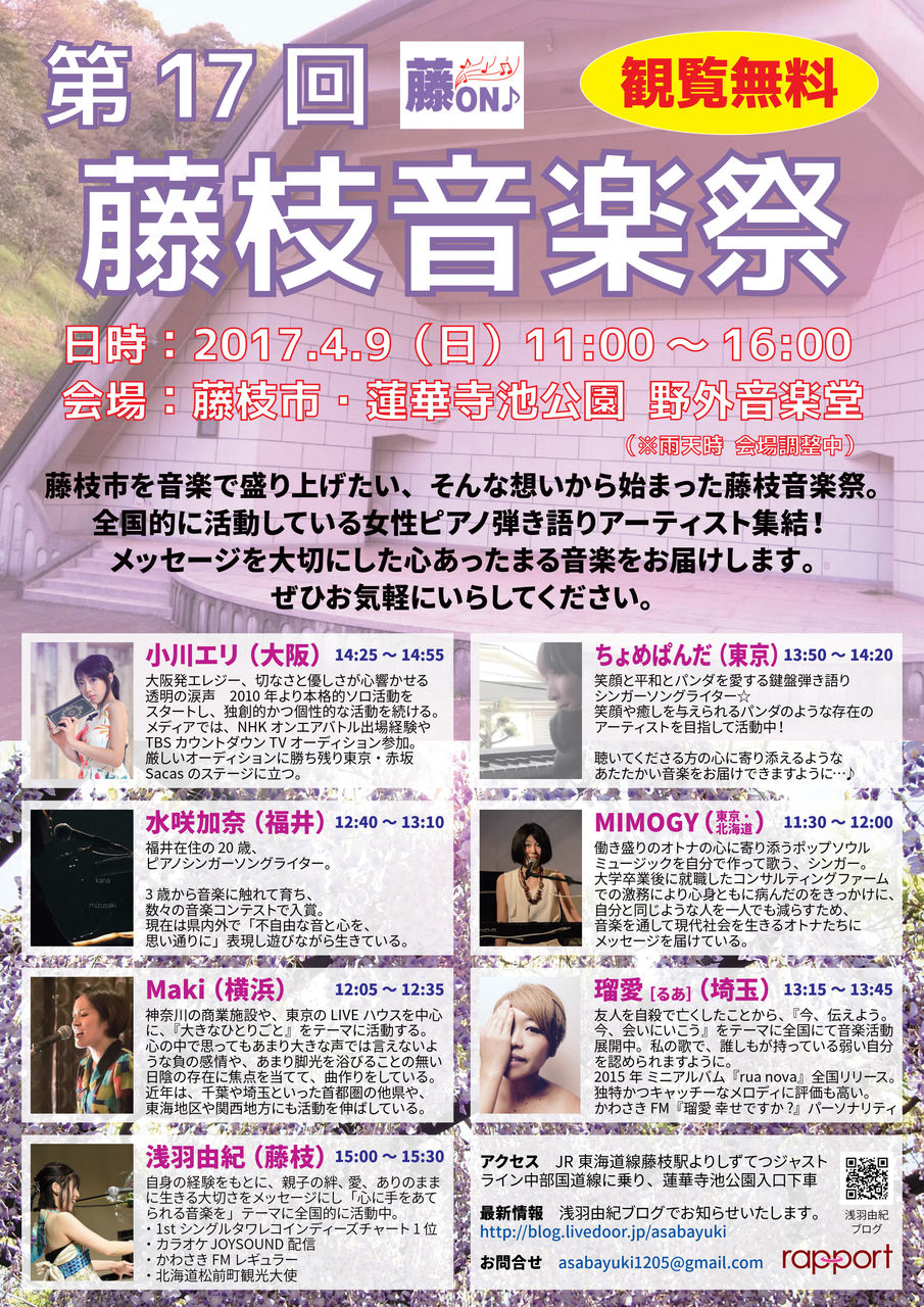 - 【本日4/9☆彡 第17回藤枝音楽祭】蓮華寺池公園野外音楽堂で開催致します!!! ※(注記)念のため雨具のご用意をm(__)m