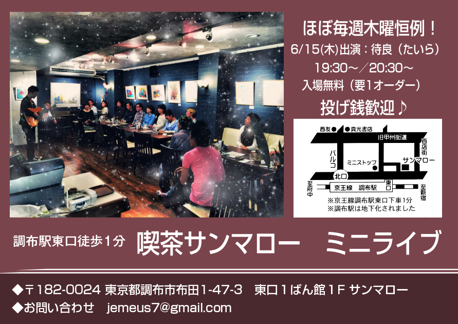- 調布サンマローミニライブは19時30分と20時30分からやでー!