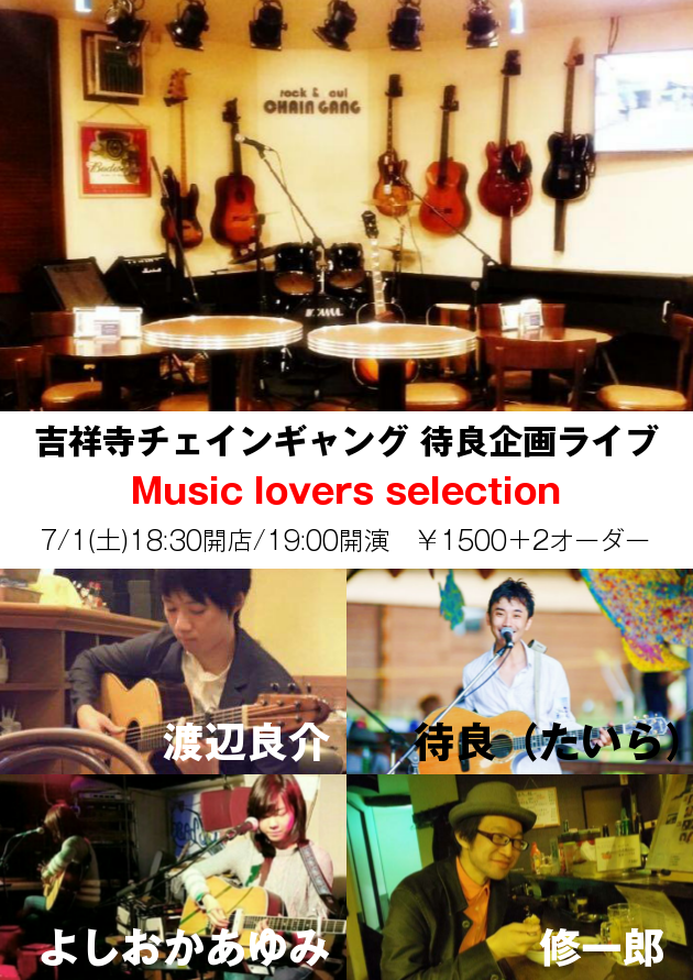 7月1日(土)吉祥寺チエインギャング待良企画ライブ