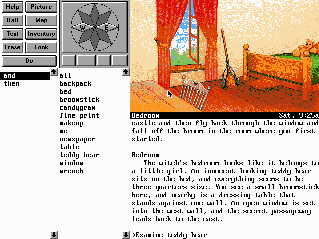 この作品も「スペルキャスト」と同じシステムが使われており、基本的にはテキスト・アドベンチャーであることも同様です(もっとも実際にはシステムが先にあり、ストーリーは後から作られていました。この点もインフォコムと共通しています)。ただし作中のジョークらしき箇所には、何だかよく分からないものも多々ありました。どうやらモンティパイソンからの引用が多いらしく、そのあたりの知識があれば、ディテールの部分もふんだんに楽しめるのではないかと思います。