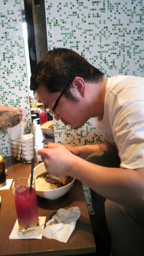 で、肉撃たディレクター様が最近心斎橋にシャンプーハットてつじさんがプロデュースするつけ麺屋がオープンしたっていうので収録後に行ってみました(^^)