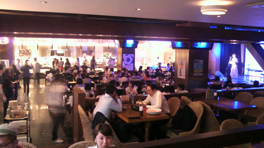 キャピキャピしてる若者達を横目に我々ミドルエイジな軍団MONSTER ROCKはバイキング形式にすっかりアガって余分に料理を取りすぎてしまったことを悔やみつつ店内で流れるスペシャの番組を見ながらあーだこーだ言いながらMONSTER ROCKの番宣が流れるとパブリックビューイングで岡田JAPANを応援するサポーターばりに「オーッ!!!!」と沸いておりました。