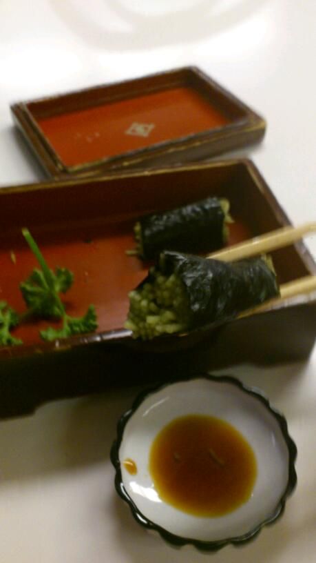酢で〆られた蕎麦の細巻。みたいな感じ。