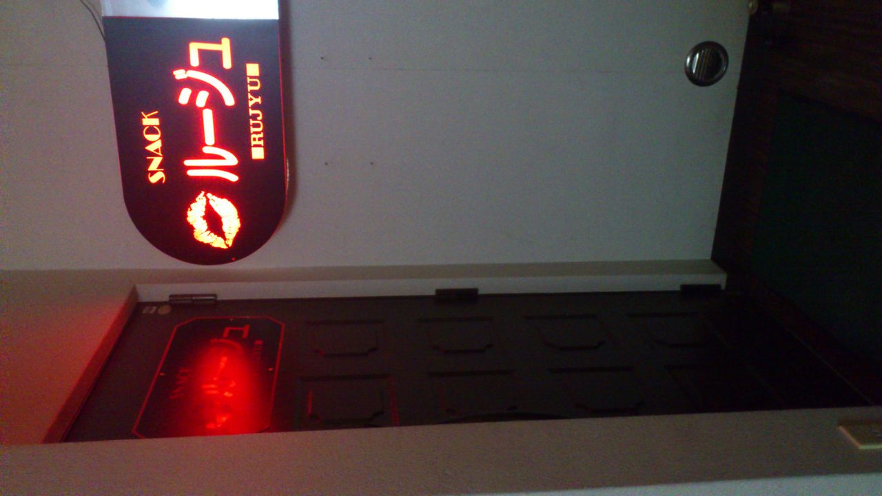話は全く変わるけど、ライブハウスと同じ階、しかもライブハウス出て5歩くらいのとこにスナックがテナントで入ってたんやけど、今はやってない店かと思いきやフツーに営業してる店で、この日も9mmのライブが始まったあたりから看板に灯りがついて元気イッパイ営業してました(^^;