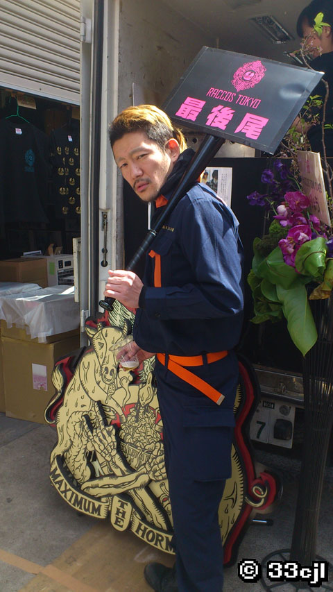 コチラの金属バット(笑)を大胆にあしらったtactics特製プラカードを持って最後尾に立っていたのが、、、、
