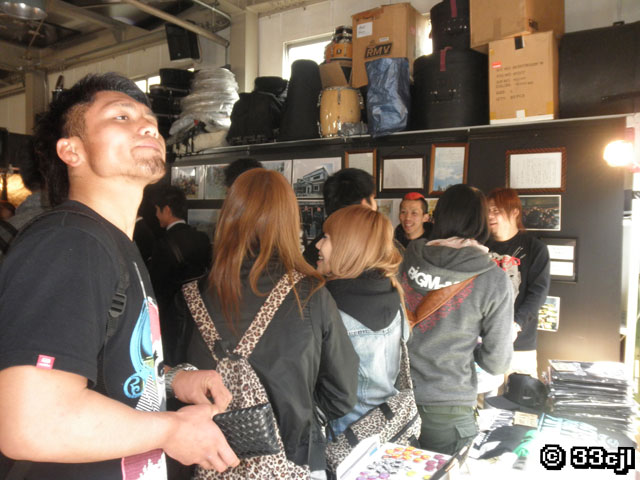 店内は飲食物を売るスペースの他にRACCOS BURGERのグッズ売り場、そして東北ライブハウス大作戦のスペースがあり、ホルモンメンバーは飲食物スペースでの接客係と東北ライブハウス大作戦スペースで募金を募る係の2班に別れて応対。