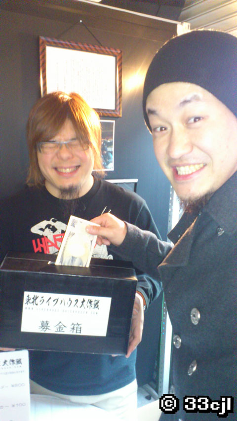 終盤、翌日が東京ライブのため前ノリしてきたlocofrankもやって来てアゴを出しながら募金に協力してくれたり