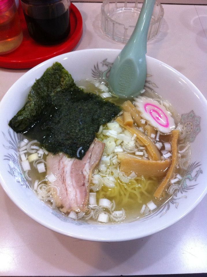 でも、初めての人もビビらないでね。「ラーメン」「チャーハン」も絶品の味ですから。写真はワイが好きな塩ラーメン550円。さっぱりしていながらコクのある塩味は、お酒の後にもスッと入ります。あんまし頼まんが(^^ゞ