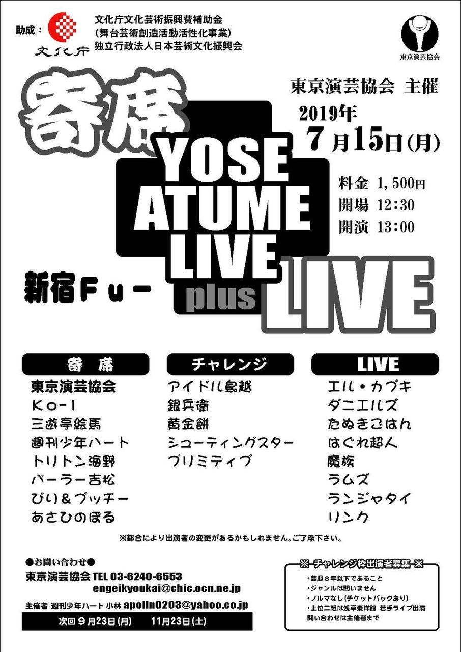 【内容】新ネタ三本、ゲストとのトーク一時間ほどを予定