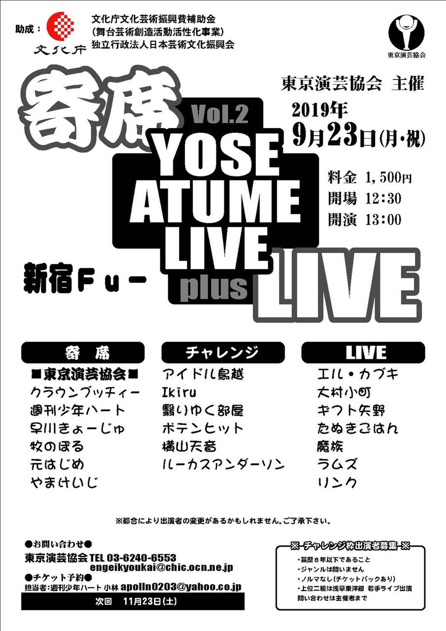 【内容】新ネタ三本、ゲストとのトーク一時間ほどを予定