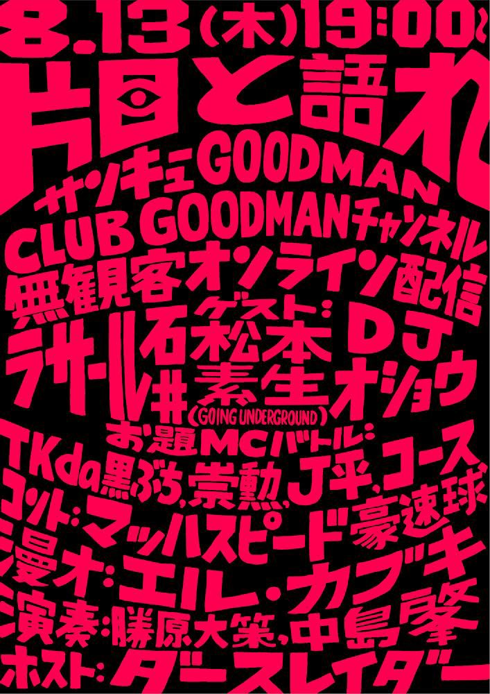 8/13(木)※(注記)無観客無料YouTube生配信 投げ銭制
