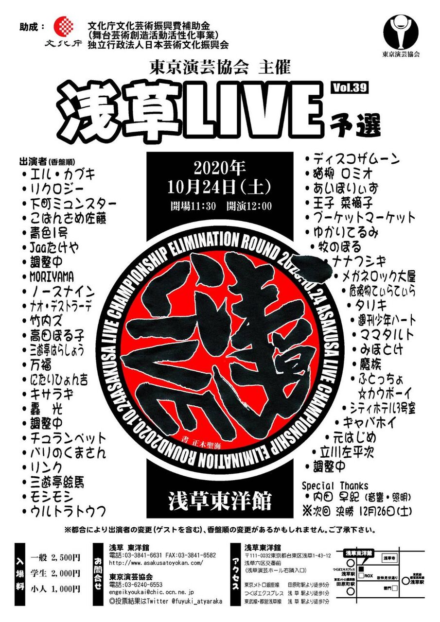 10/9(金)※(注記)ネタ2本ライブの2回公演