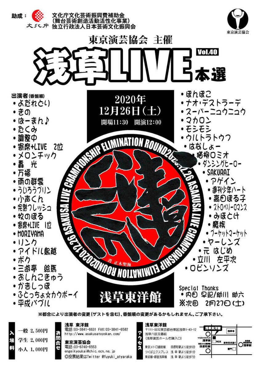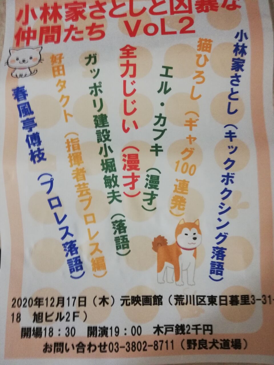 12/10(木)※(注記)ネタ2本ライブの2回公演