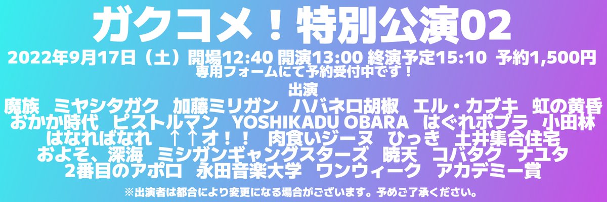 ゆにばーす/ガクテンソク/とらふぐ/鬼越トマホーク/ドンデコルテ/ゆかいな議事録/三拍子/エル・カブキ