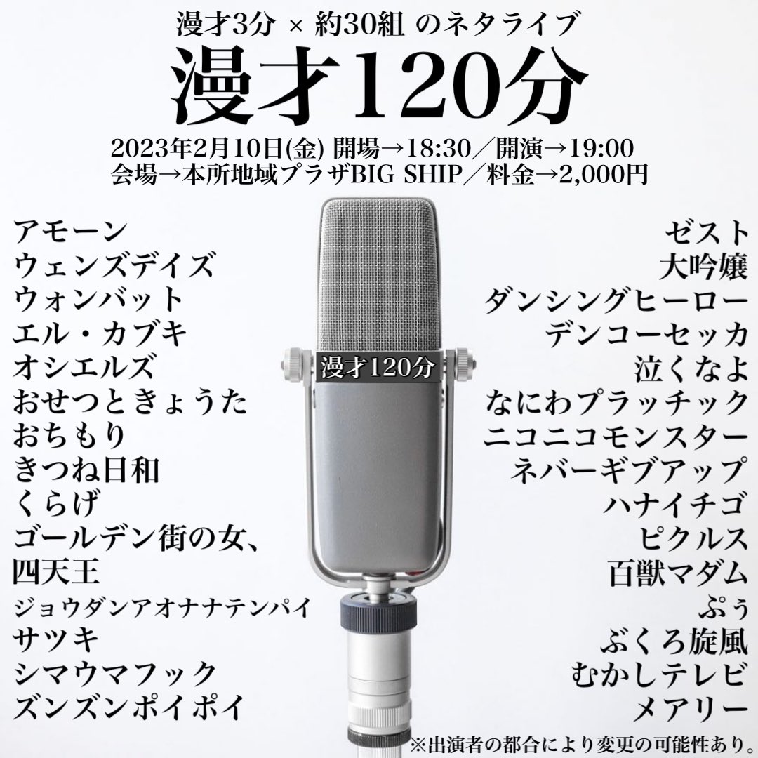 畠山理仁に漫才を見せてトピックを拾ってもらう会です。