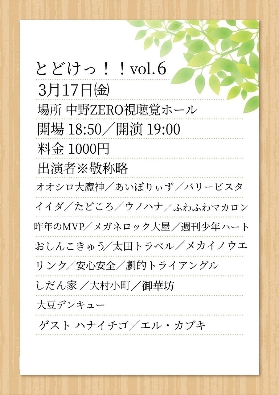 17のみコメントいただければ前売り料金でお取り置き致します。