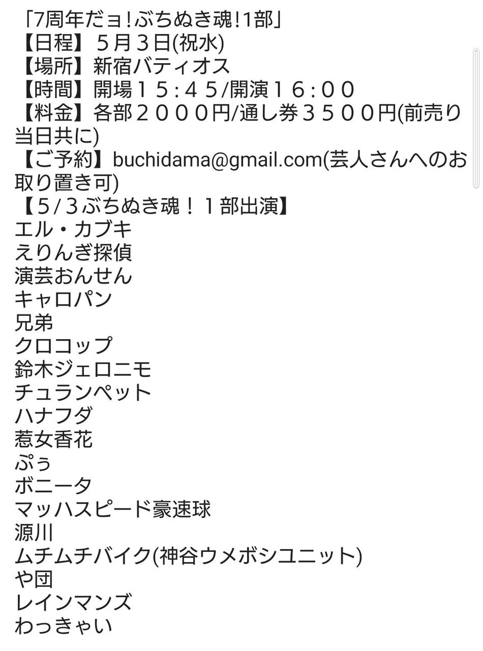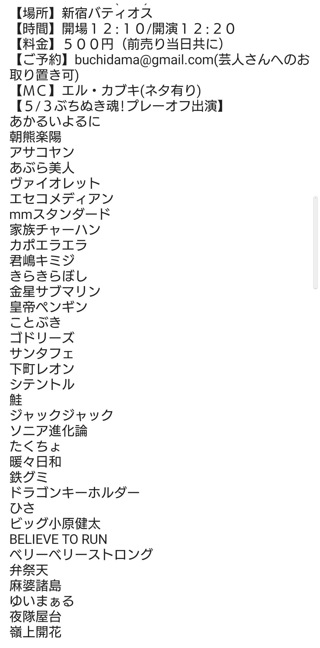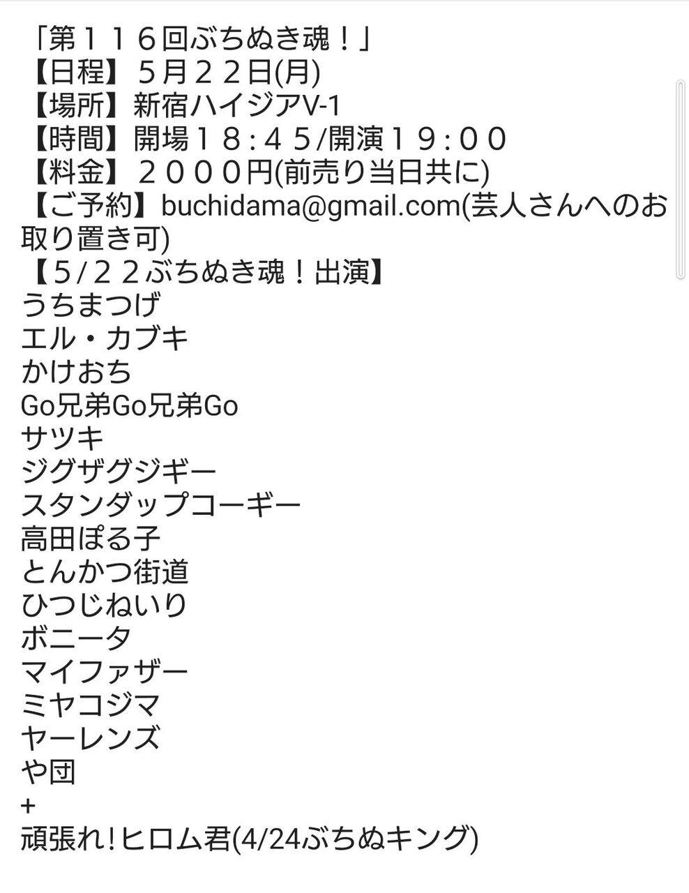 【ご予約】buchidama@gmail.com