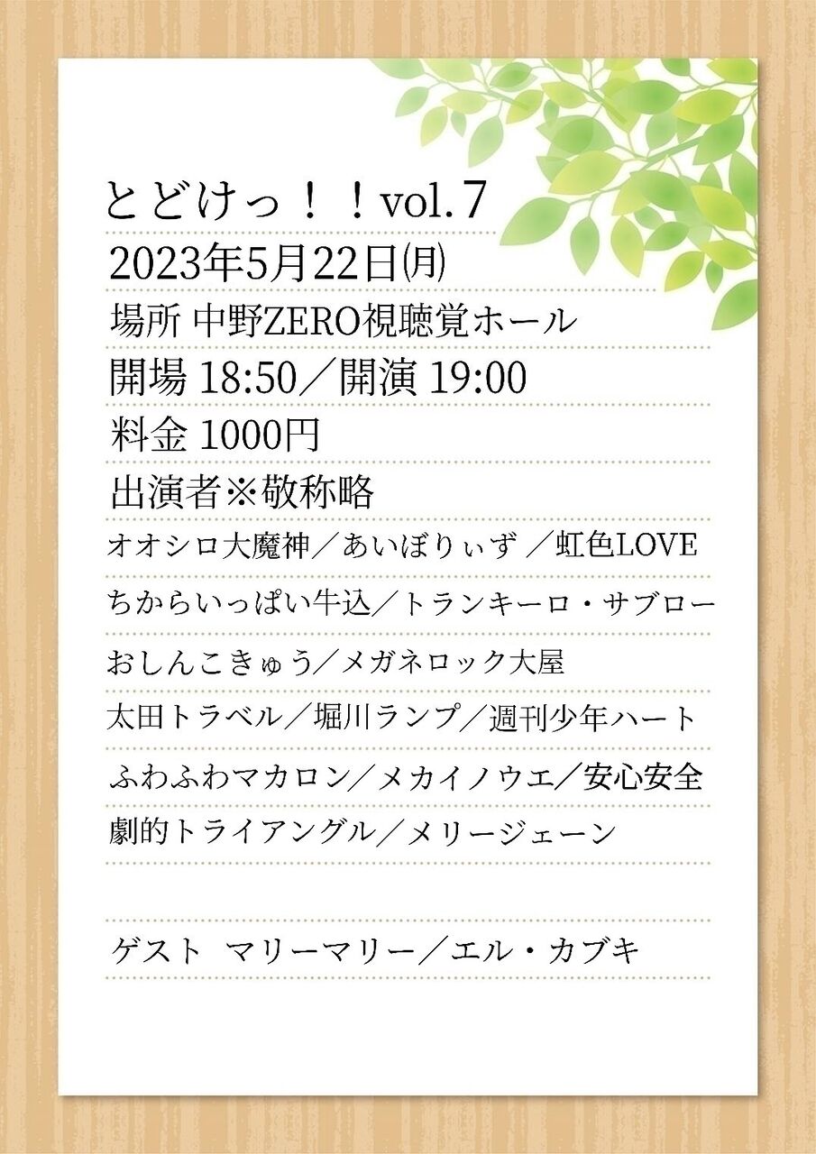 3(水祝)※(注記)MCとネタで出演