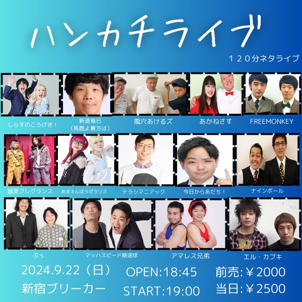 2、9、12、16、25、はコメントいただけましたら前売料金で取り置き承ります。
